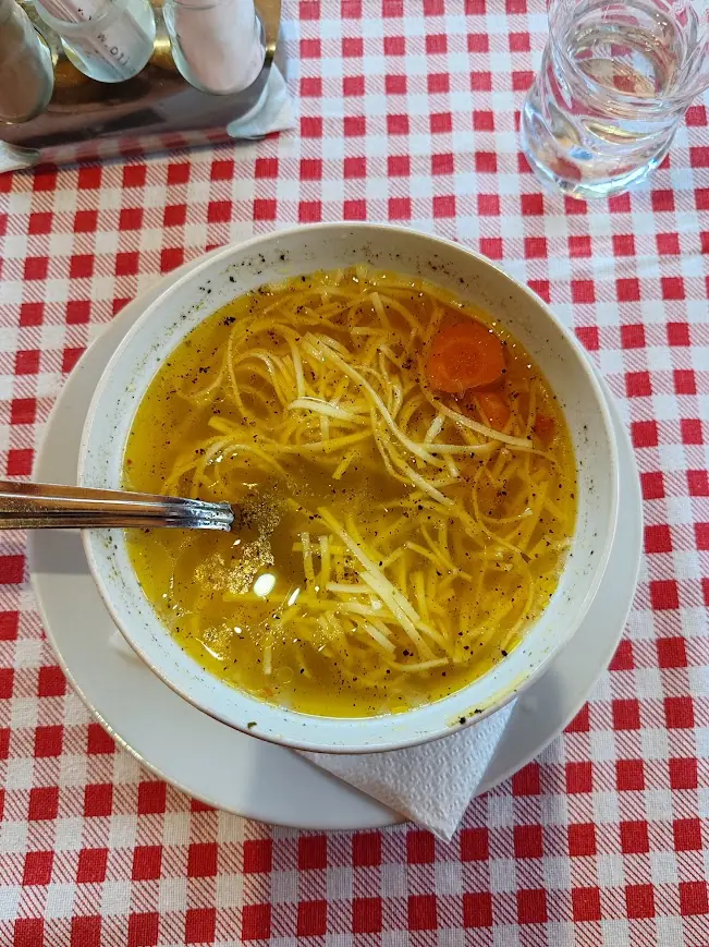 Am ajuns înapoi la pensiune pe la ora 17:00 după un traseu de 12 km (dus-întors). M-am odihnit puțin și-am coborât la restaurantul pensiunii pentru cină. Am mâncat o ciorbă țărănească delicioasă, acompaniată de Joan Baez (piesa Diamonds and rust) și vocile celorlalți oameni pe fundal și m-a cuprins o moleșeală dulce.
